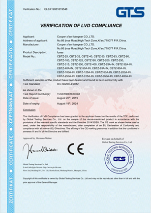产品符合IEC60269-4/GB13539.4,并获取CE认证